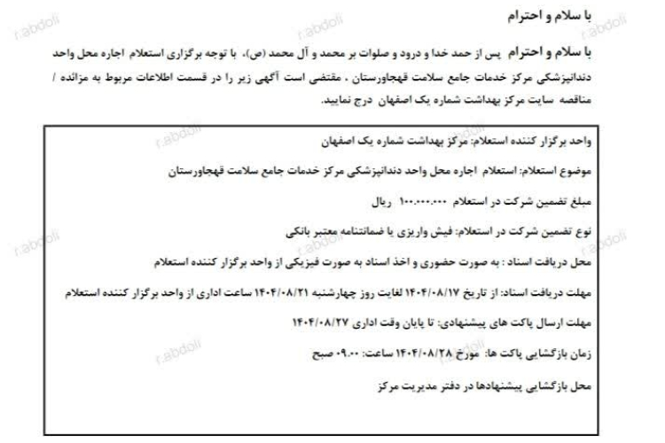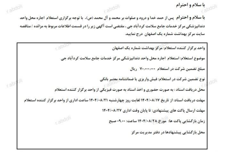 ✅برگزاری استعلام واگذاری واحد دندانپزشکی مرکز خدمات جامع سلامت کردآباد جی