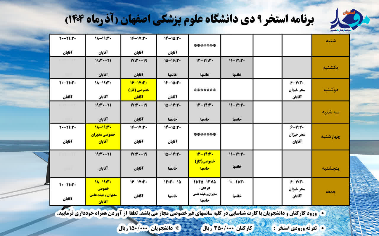 ✅ برنامه استخر 9 دی دانشگاه علوم پزشکی اصفهان